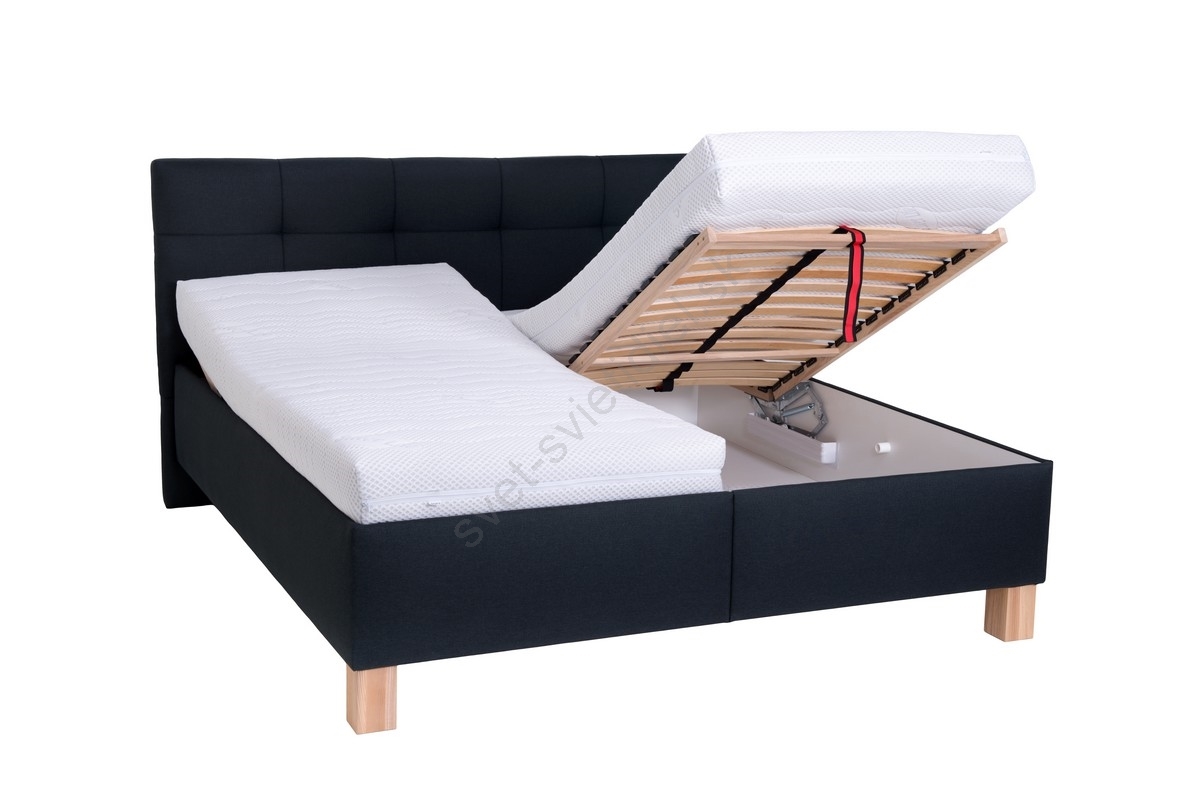 • Dvojlôžko ponúka polohovanie čela a výškovo nastaviteľné nožičky pre maximálny relax.