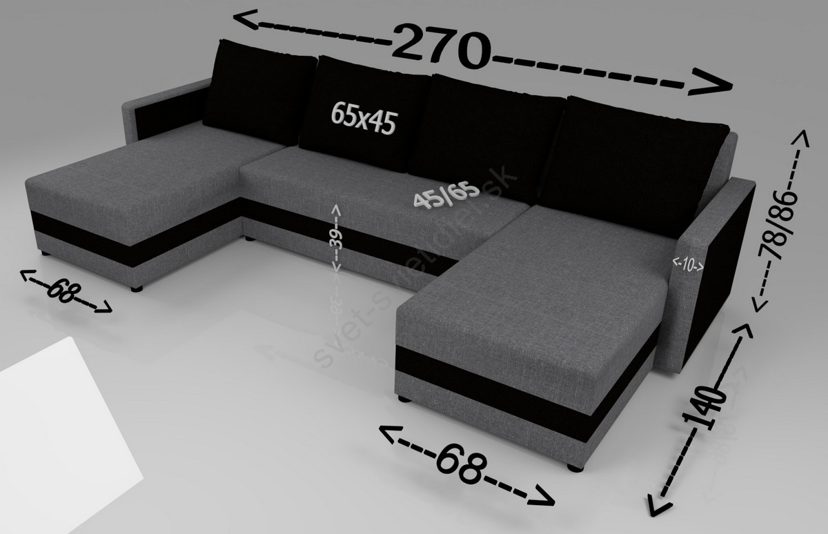 • Čalúnená univerzálna rozkladacia sedacia súprava do tvaru U BRISTOL sivá/čierna