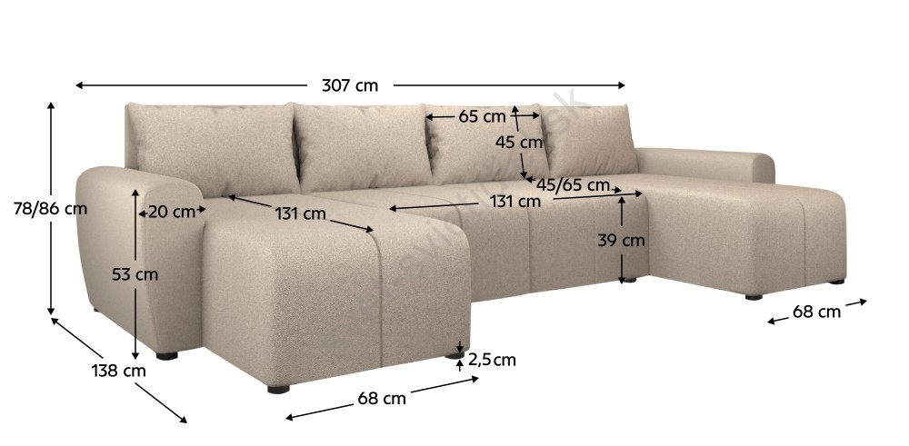 • Čalúnená univerzálna rozkladacia sedacia súprava v tvare U NEWPORT béžová