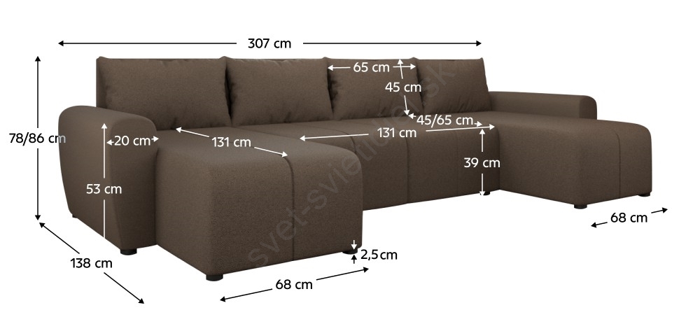 • Štýlové čierne nožičky decentne dopĺňajú celok a dodávajú rohovej sedacej súprave ľahkosť a moderný charakter.