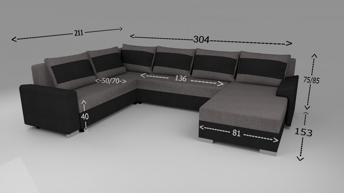 • Čalúnená univerzálna rozkladacia sedacia súprava v tvare U OXFORD, čierna/šedá