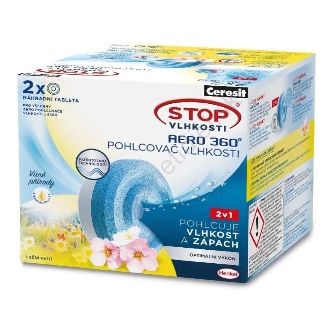 Ceresit - Tablety do odvlhčovača 2v1 AERO 360° 2x 450 g lúčne kvety