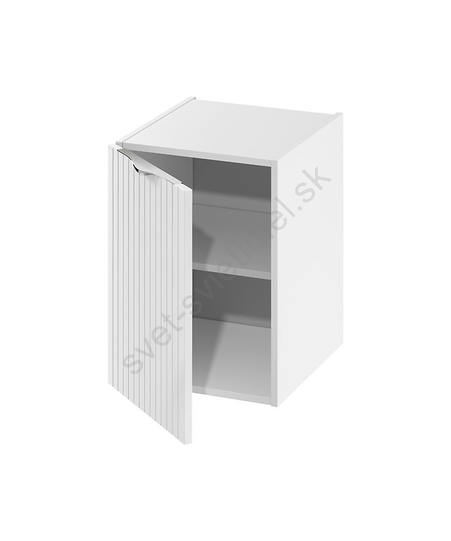 • Čelo, korpus a vnútorné poličky skrinky sú vyrobené z 16 mm drevotriesky s bielym lakom.