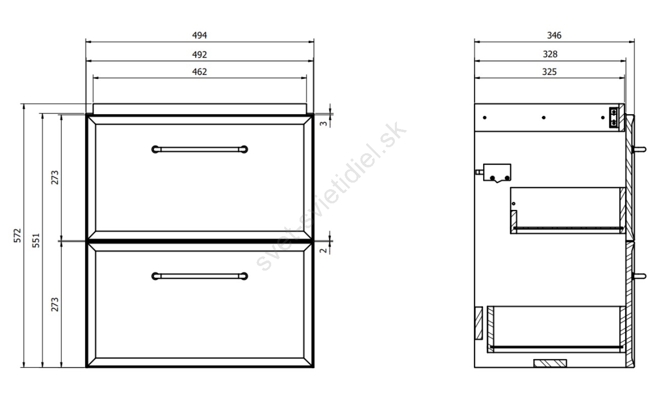 • Skrinka má dve priestranné zásuvky so systémom tlmeného dovierania - soft close.