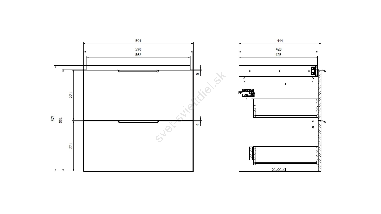 • Skrinka má dve priestranné zásuvky s tlmeným dovieraním.