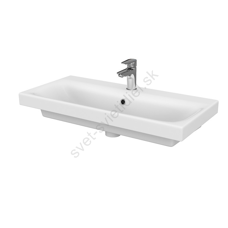 • Keramické umývadlo má klasický obdĺžnikový tvar s otvorom pre batériu a prepadom.