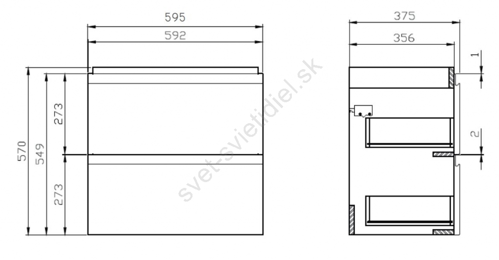 • Skrinka má dve priestranné zásuvky s tlmeným dovieraním a skrytými úchytkami.