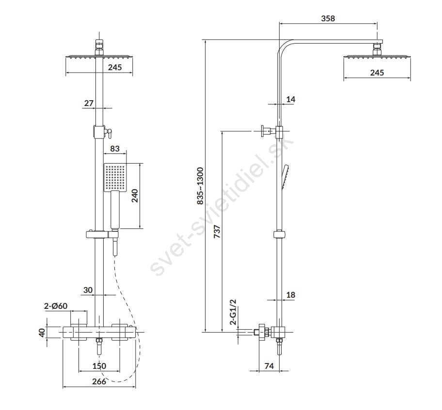 • Súprava obsahuje 150 cm dlhú sprchovú hadicu.