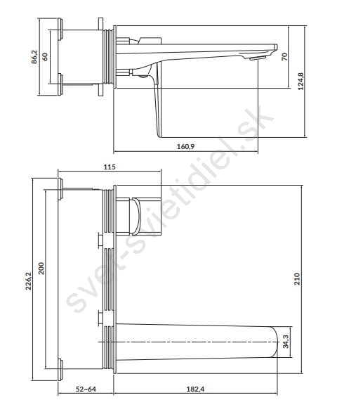 • Stenová umývadlová batéria pre podomietkovú inštaláciu.
