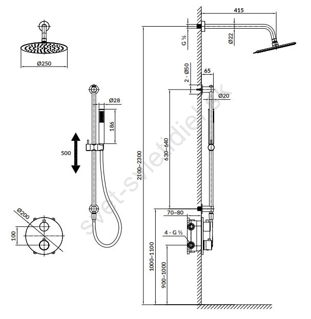 • Táto sprchová súprava s termostatickou podomietkovou batériou je elegantným doplnkom každej kúpeľne.
