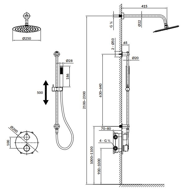 • Táto sprchová súprava s termostatickou podomietkovou batériou je elegantným doplnkom každej kúpeľne.