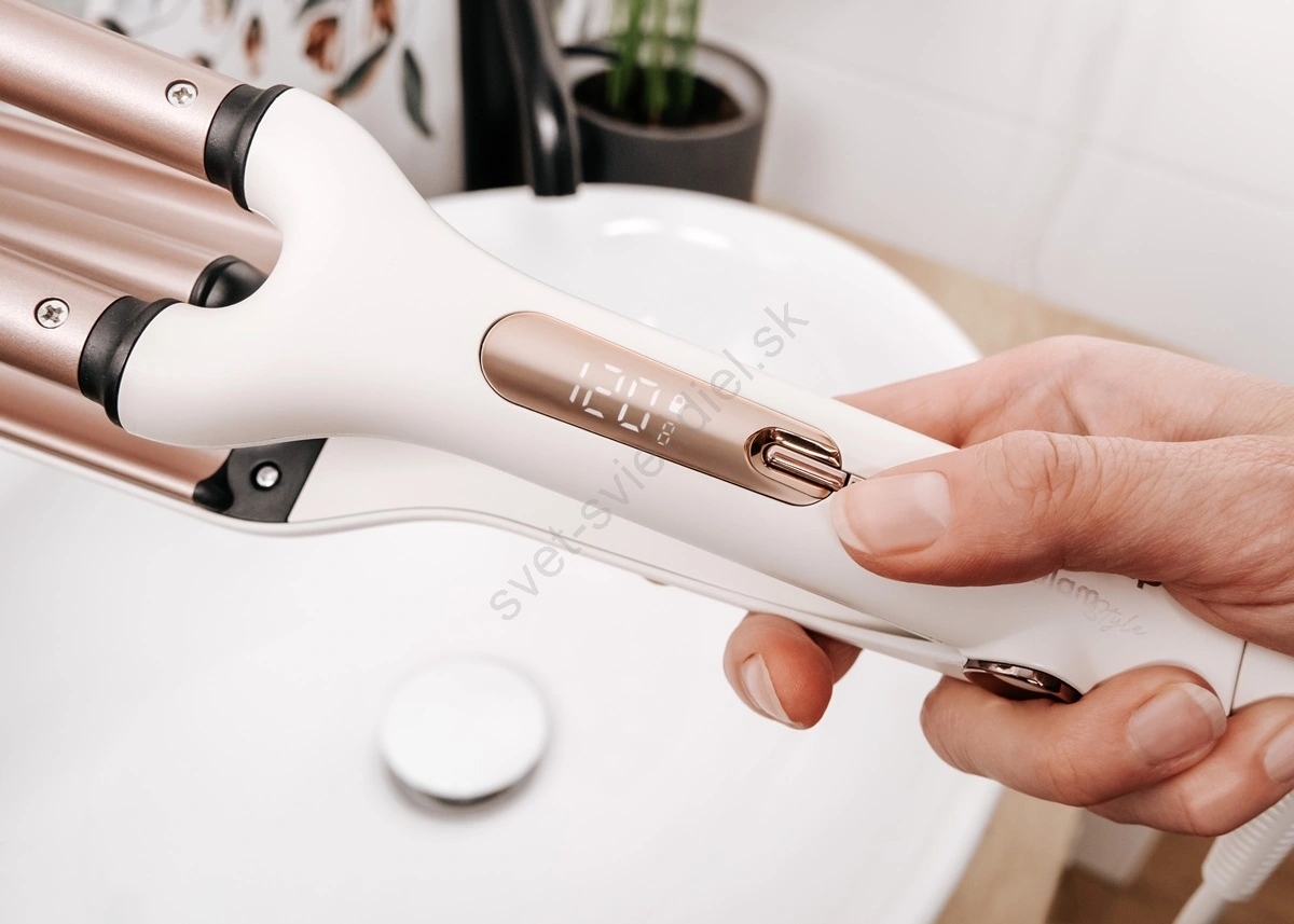 • Trojvalcová kulma s keramickým povrchom je vynikajúcim pomocníkom pre rýchle a jednoduché vytvorenie štýlových vĺn.