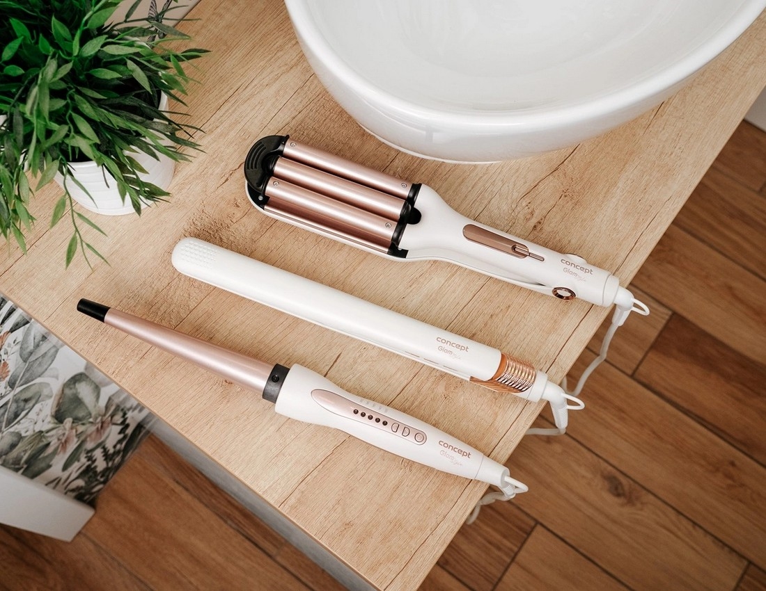 Concept KT2140 - Trojkulma na vlasy GLAM STYLE 100W/230V biela/ružovo-zlatá