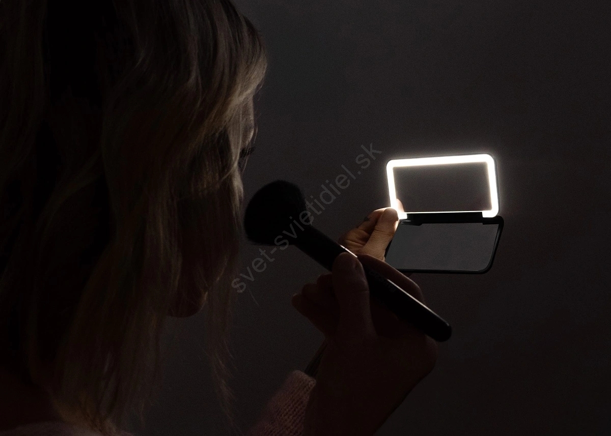 • Zrkadlo vám bude svietiť až 3 hodiny na jedno nabitie a dá sa ľahko nabiť aj pomocou USB kábla cez powerbanku.