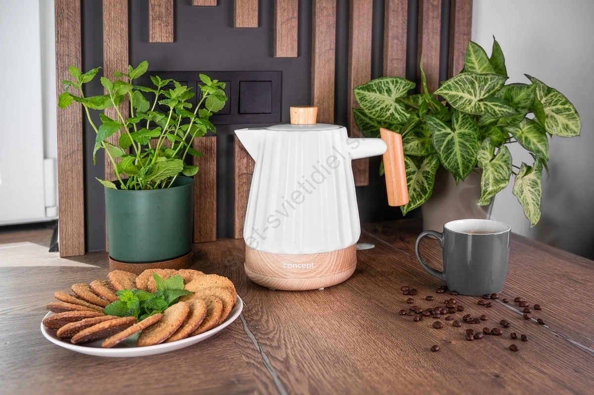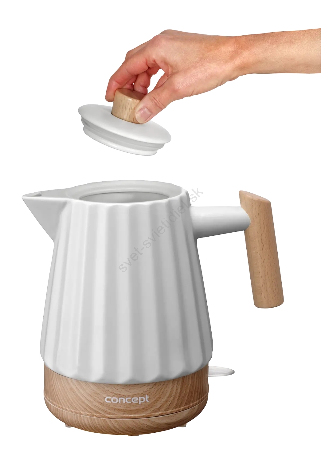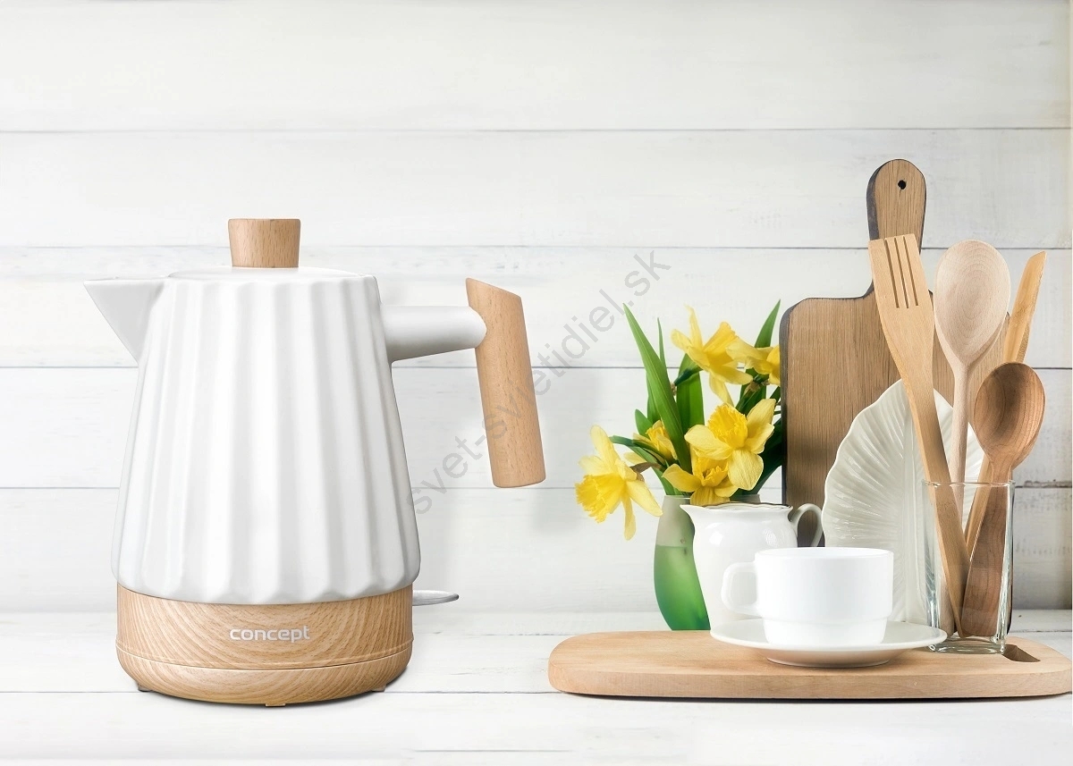 Concept RK0090 - Rýchlovarná kanvica 1,5 l 1500W/230V biela/drevený dekor/keramika