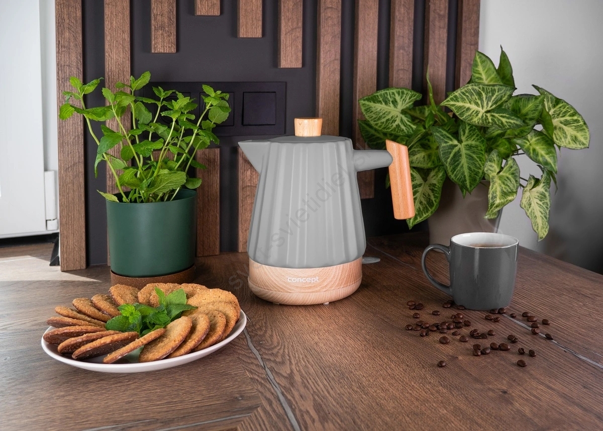Concept RK0092 - Rýchlovarná kanvica 1,5 l 1500W/230V tmavošedá/drevený dekor/keramika