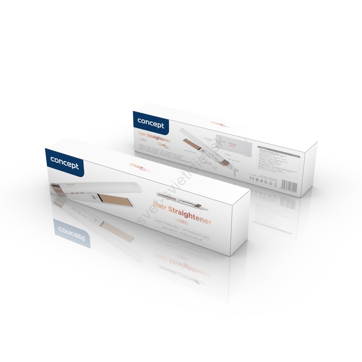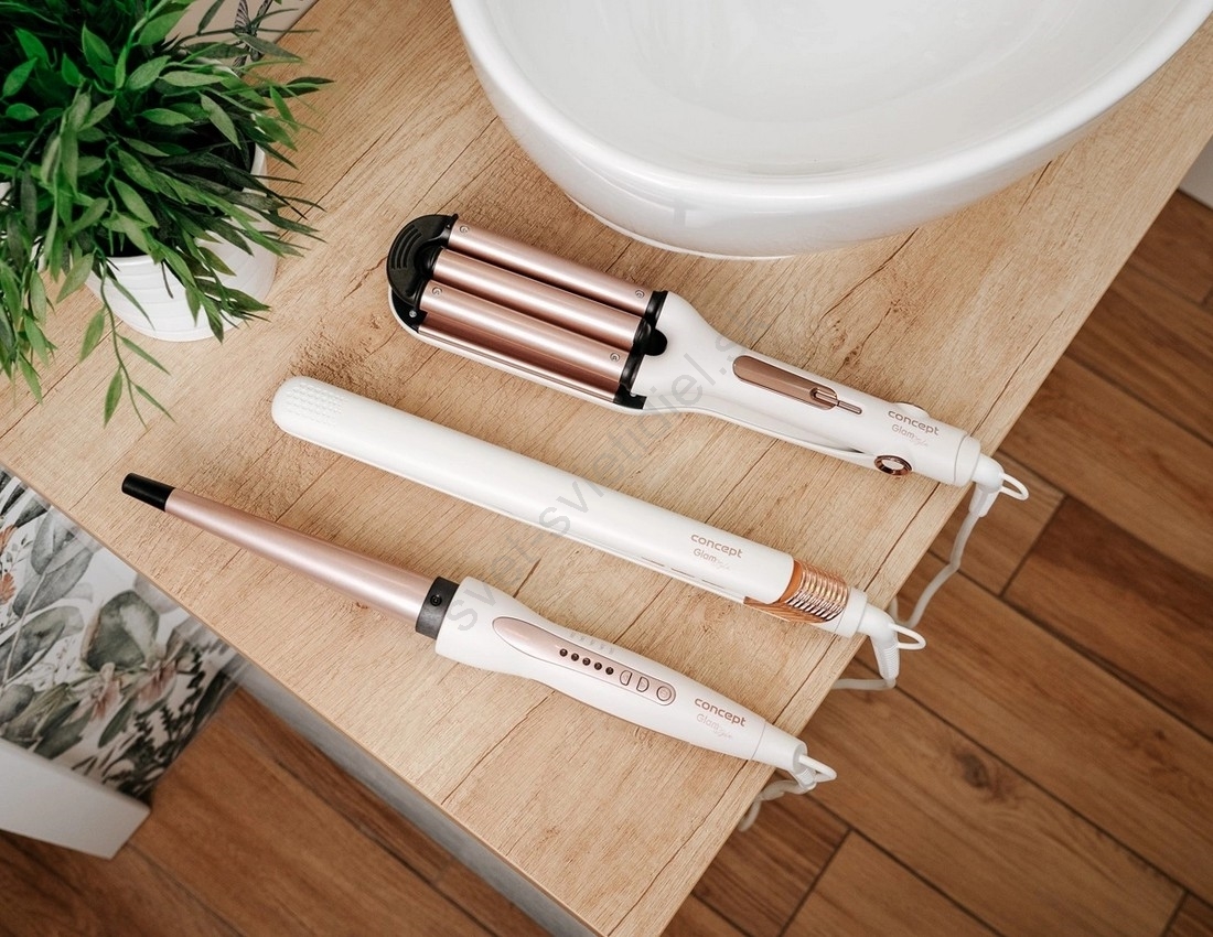 Concept VZ2110 - Žehlička na vlasy GLAM STYLE 48W/230V biela/ružovo-zlatá
