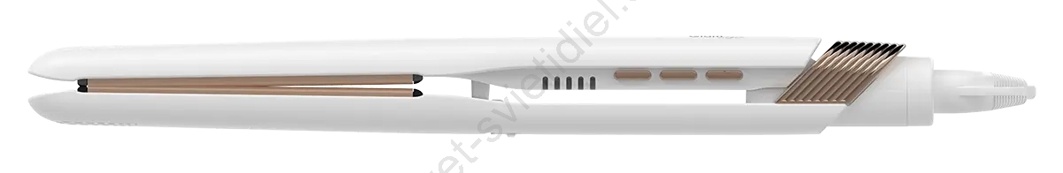 • Žehlička na vlasy s keramickým povrchom, ktorý zabezpečuje plynulý sklz po vlasoch a rovnomerné rozloženie teploty.
