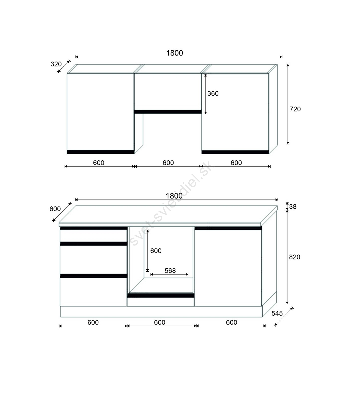 • Súčasťou nie sú elektrospotrebiče, kuchynský drez ani kuchynská batéria.