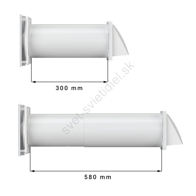 • Teleskopické potrubie s rozsahom 300 až 580 mm zabezpečí jednoduché prispôsobenie rôznym hrúbkam múrov.