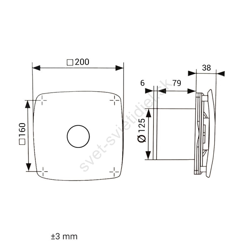 • Ventilátor je kompatibilný s potrubím o pr. 125 mm.