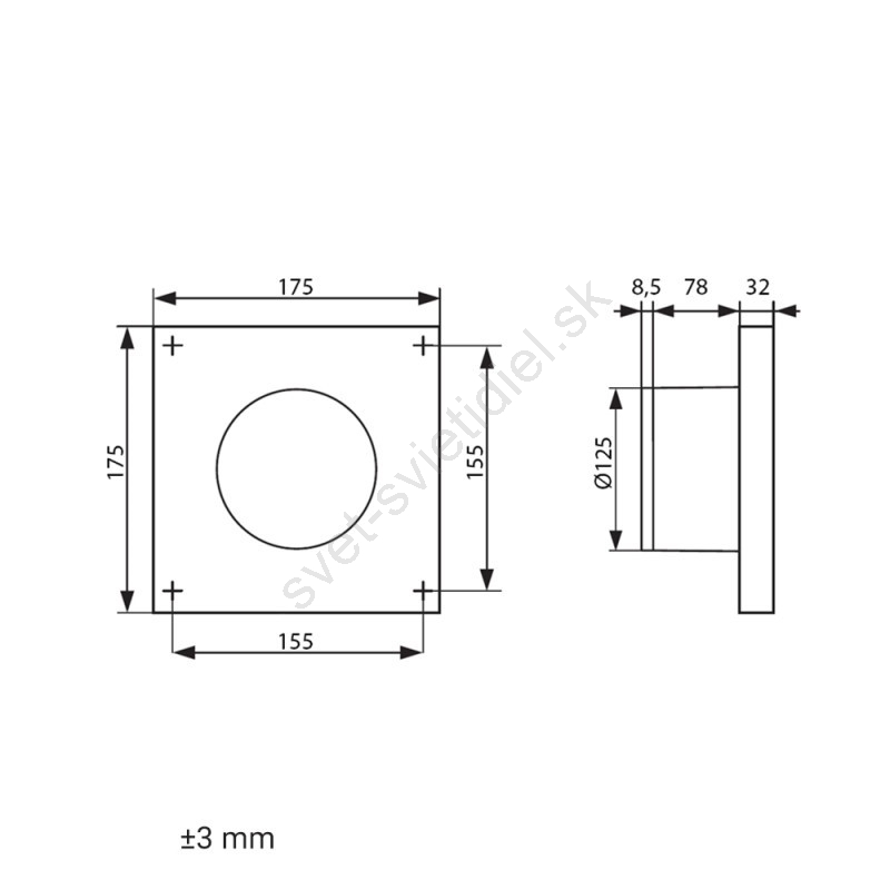 • Ventilátor je kompatibilný s potrubím s priemerom 125 mm.