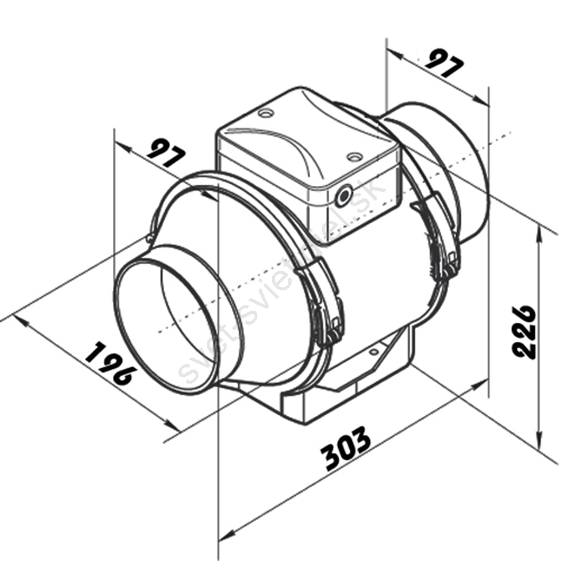 • Ventilátor je kompatibilný s kruhovým potrubím o priemere 100 mm.