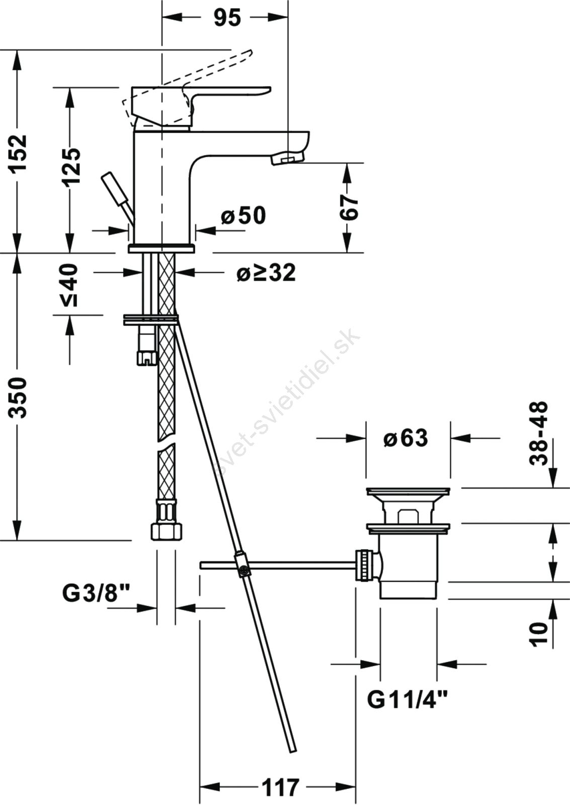 • Páková batéria na umývadlo je určená na montáž na umývadlo.