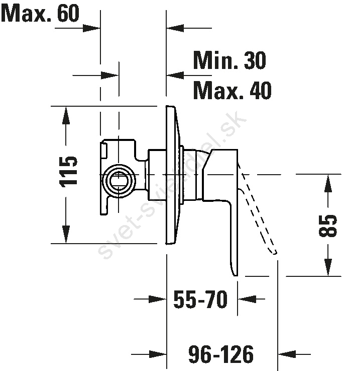 • Jednoručná sprchová batéria je určená na podomietkovú montáž.
