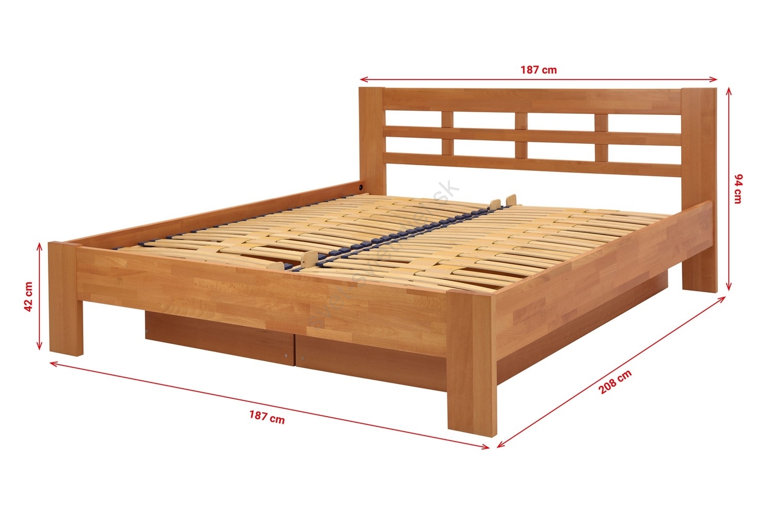 • Dvojlůžková postel z masivu s úložným prostorem ANGELA 180x200 cm buk