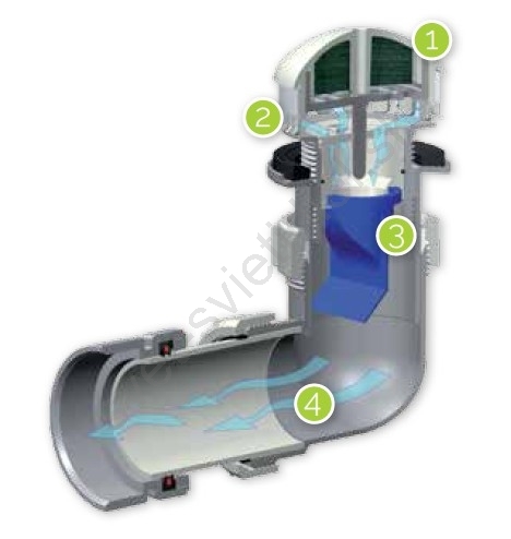 • Na obrázku v galérii je v reze znázornený princíp fungovania bezvodného pisoáru EcoStep P1.1: