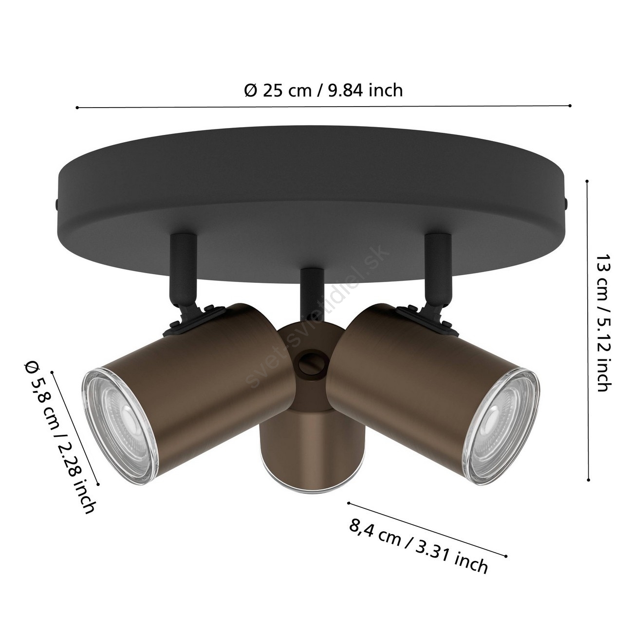 Eglo - Kúpeľňové bodové svietidlo 3xGU10/5W/230V pr. 25 cm IP44 čierne/hnedé