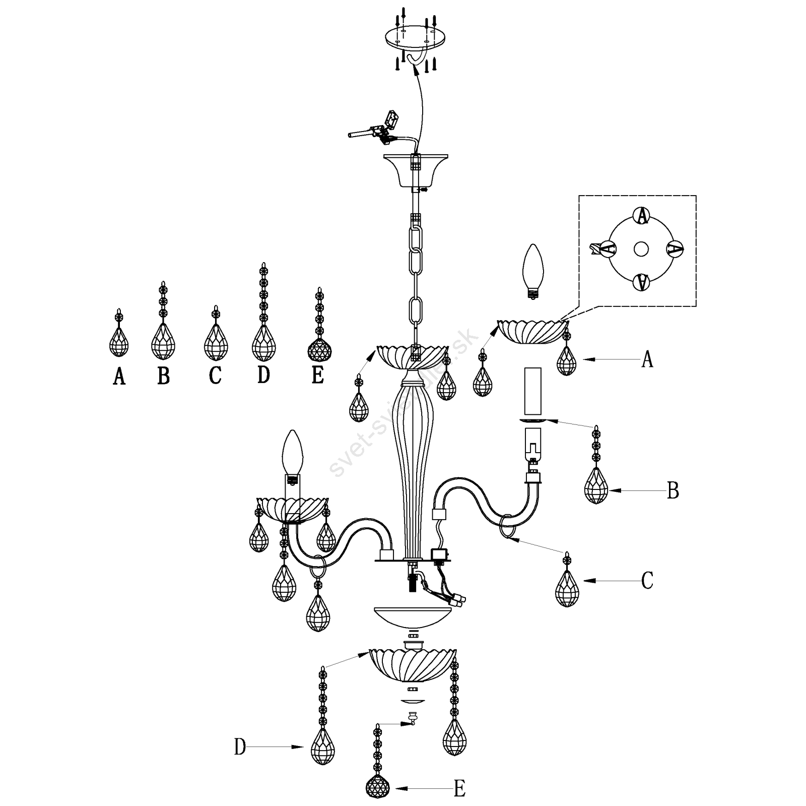 Eglo 39113- Luster CARPENTO 5xE14/40W/230V charakterizuje pekný dizajn a funkčné prevedenie.  Do svietidla je určená žiarovka s päticou E14. Tu si môžete kúpiť ďalšie žiarovky za výhodnú cenu. Získate tak zaujímavý doplnok do svojho domova.