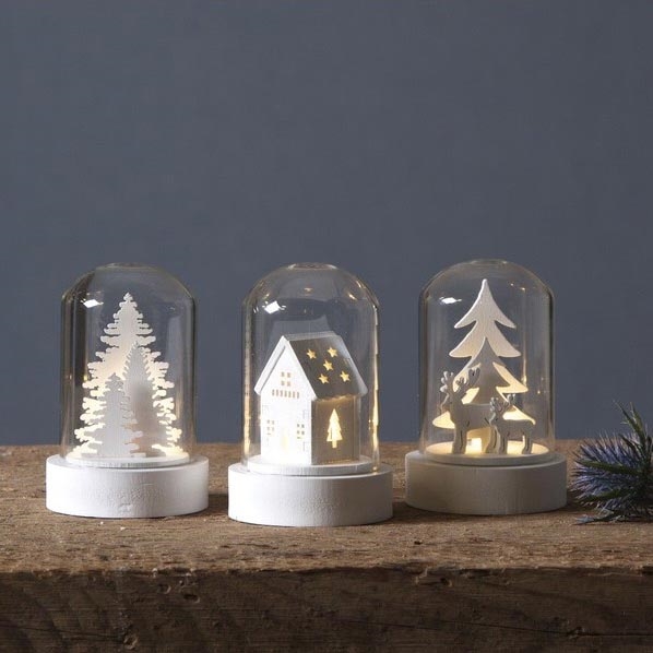 • Sada LED vianočných dekorácií s drevenými figúrkami vo vnútri.