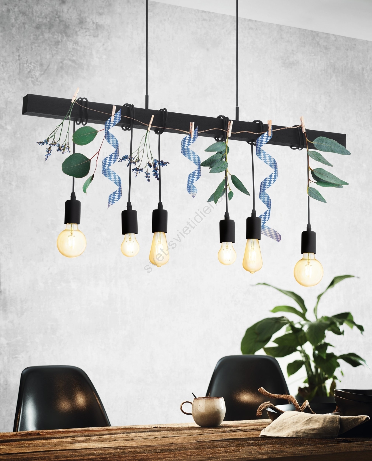 Eglo - Závesný luster na lanku TOWNSHEND 6xE27/60W/230V charakterizuje pekný dizajn a funkčné prevedenie.  Do svietidla je určená žiarovka s päticou E27. Tu si môžete kúpiť ďalšie žiarovky za výhodnú cenu. Získate tak zaujímavý doplnok do svojho domova.
