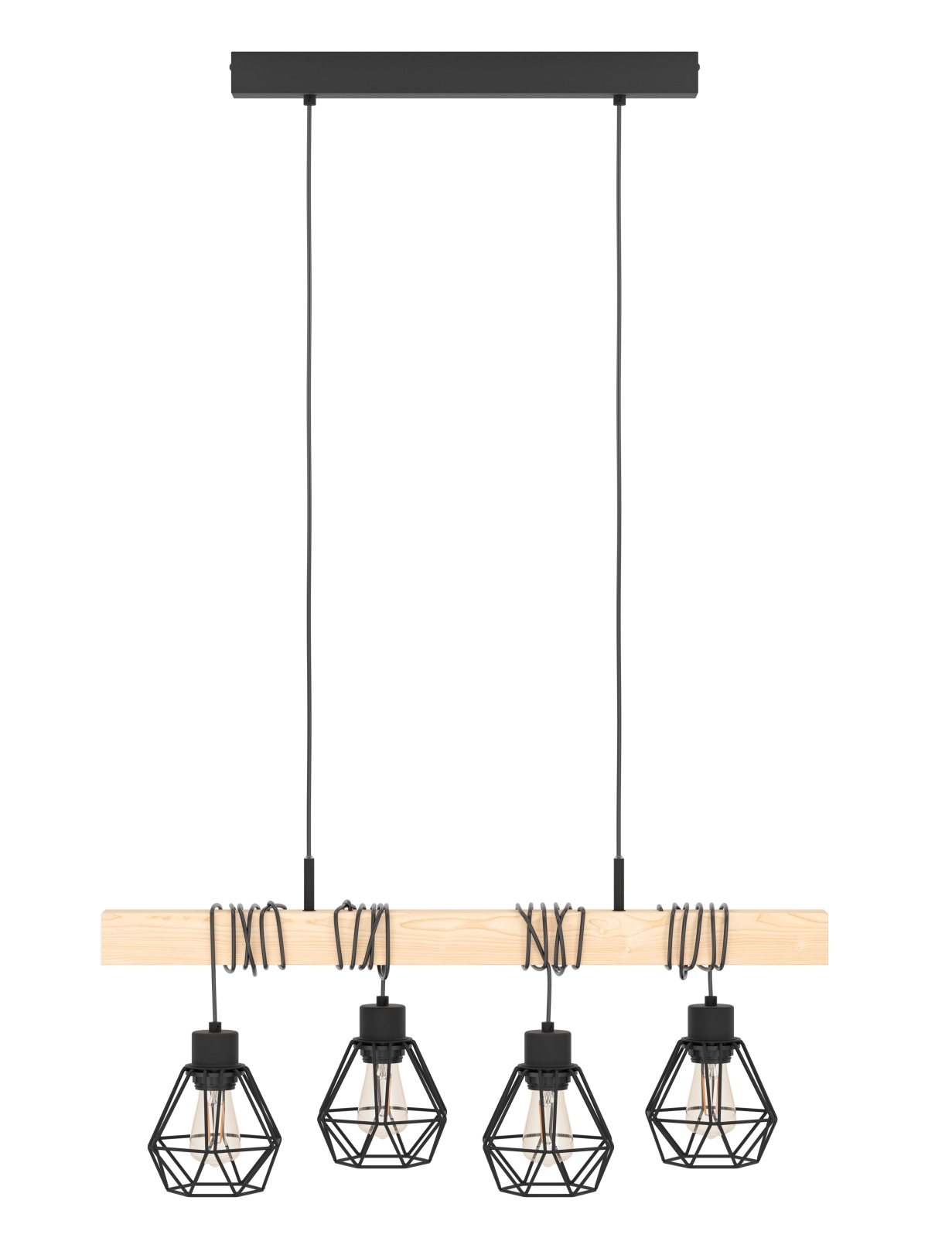 Eglo - Závesný luster TOWNSHEND 4xE27/60W/230V charakterizuje pekný dizajn a funkčné prevedenie.  Do svietidla je určená žiarovka s päticou E27. Tu si môžete kúpiť ďalšie žiarovky za výhodnú cenu. Získate tak zaujímavý doplnok do svojho domova.