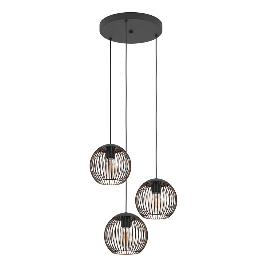 Eglo - Závesné svietidlo na lanku 3xE27/60W/230V čierne