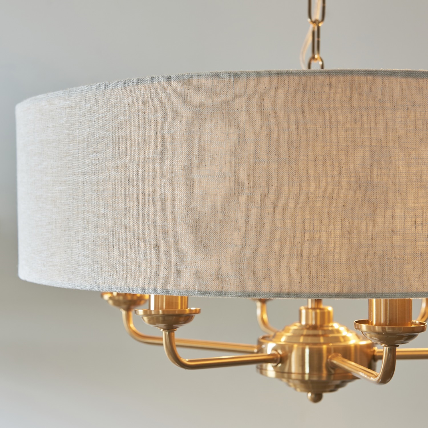 Endon 110722 - Závesný luster HIGHCLERE na reťazi 6xE14/40W/230V, béžová/mosadz, priemer 55 cm charakterizuje pekný dizajn a funkčné prevedenie.  Do svietidla je určená žiarovka s päticou E14. Tu si môžete kúpiť ďalšie žiarovky za výhodnú cenu. Získate tak zaujímavý doplnok do svojho domova.