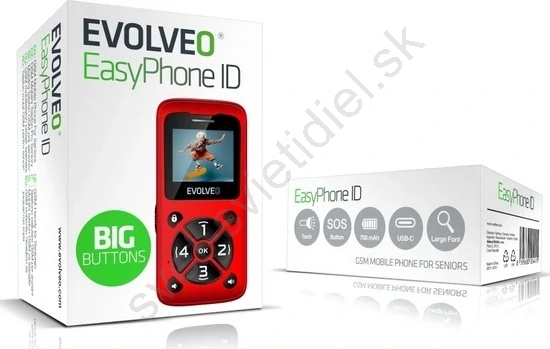 Evolveo - EasyPhone ID, mobilný telefón pre seniorov, červený