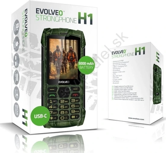 Evolveo - StrongPhone H1, vodotesný Dual SIM telefón v poľovníckej kamufláži