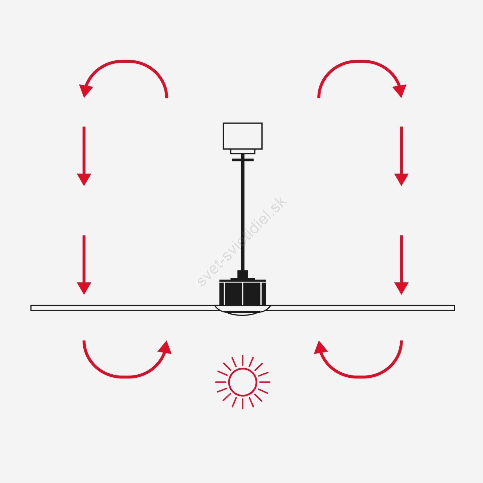 • Tento ventilátor má funkciu spätného chodu leto-zima, takže ho môžete používať aj v zime (úspora nákladov na vykurovanie až 20 %).