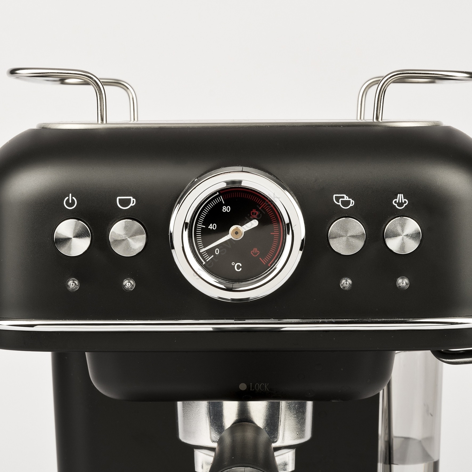 • Elegantný pákový kávovar je ideálnou voľbou pre všetkých milovníkov espressa, ktorí chcú mať proces prípravy plne pod kontrolou vďaka prehľadnému analógovému teplomeru.