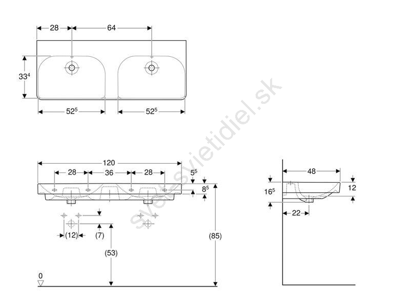 • Dvojité umývadlo je určené na montáž na stenu.