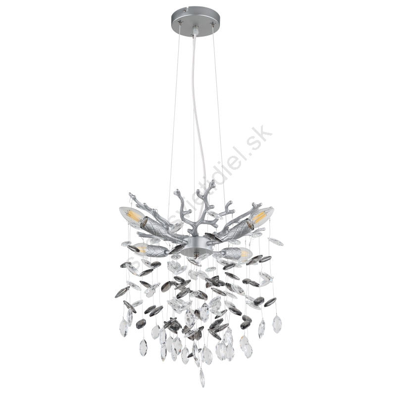Globo - Luster na lanku 4xE14/40W/230V strieborný charakterizuje pekný dizajn a funkčné prevedenie.  Do svietidla je určená žiarovka s päticou E14. Tu si môžete kúpiť ďalšie žiarovky za výhodnú cenu. Získate tak zaujímavý doplnok do svojho domova.