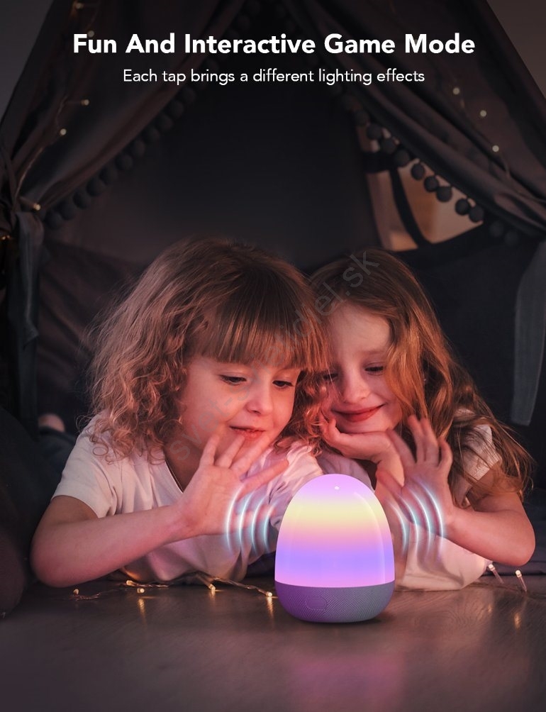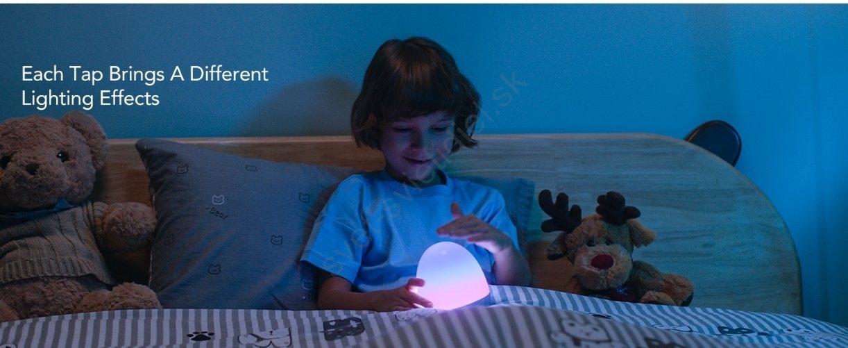 • Nočnú lampičku je možné ovládať aj jednoduchým ťukaním a tlačidlami priamo na lampičke tak, aby to zvládli aj malé deti.