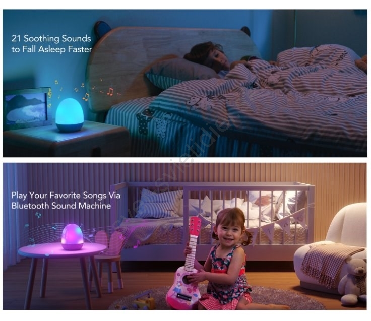 • Zaspávanie deťom spríjemní 21 zvukov bieleho šumu na navodenie pokojnej atmosféry.