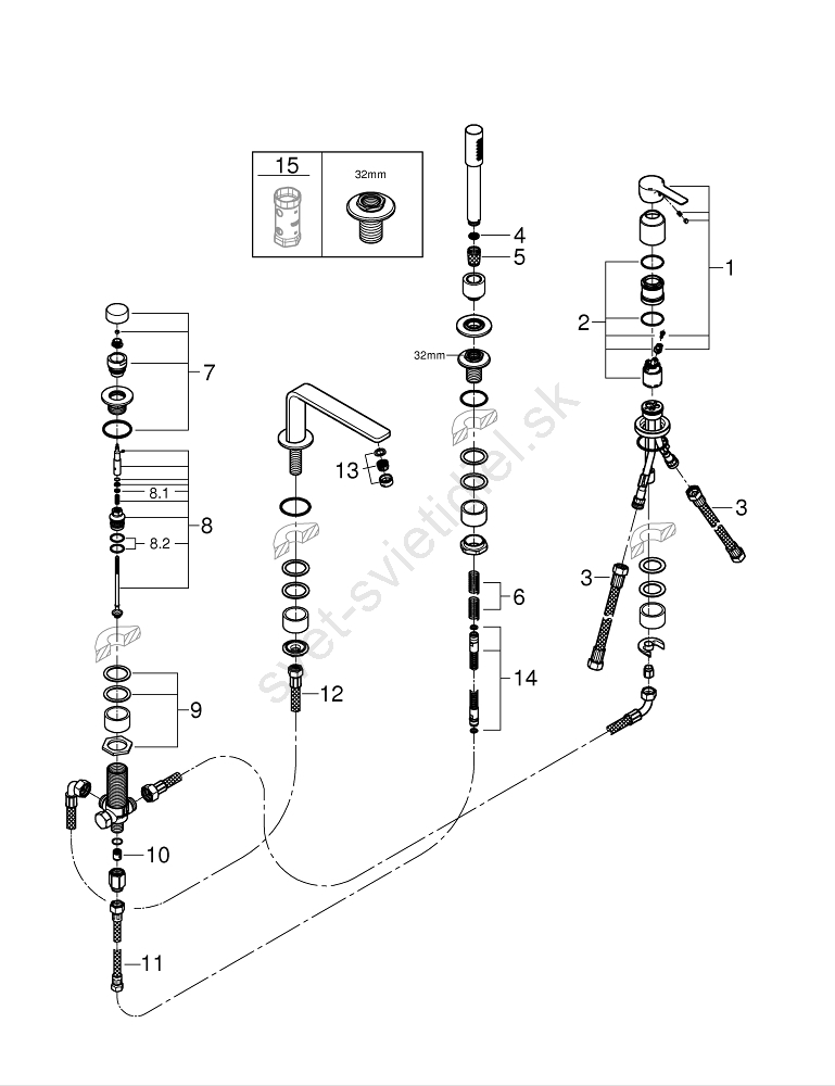 • Prípojka pre sprchovú hadicu pre kompletnú funkčnosť.