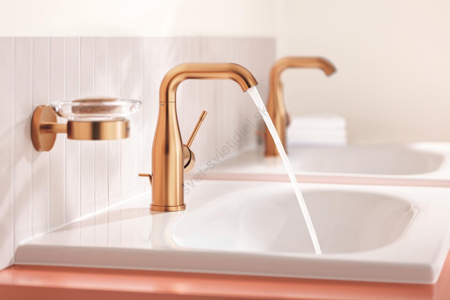 • Elegantná páková umývadlová batéria GROHE Essence v prevedení Brushed Warm Sunset.