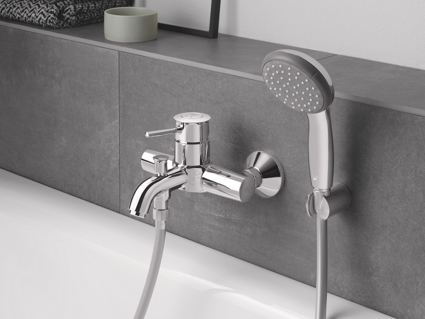 • Páková nástenná vaňová batéria s elegantným chrómovým povrchom GROHE StarLight.