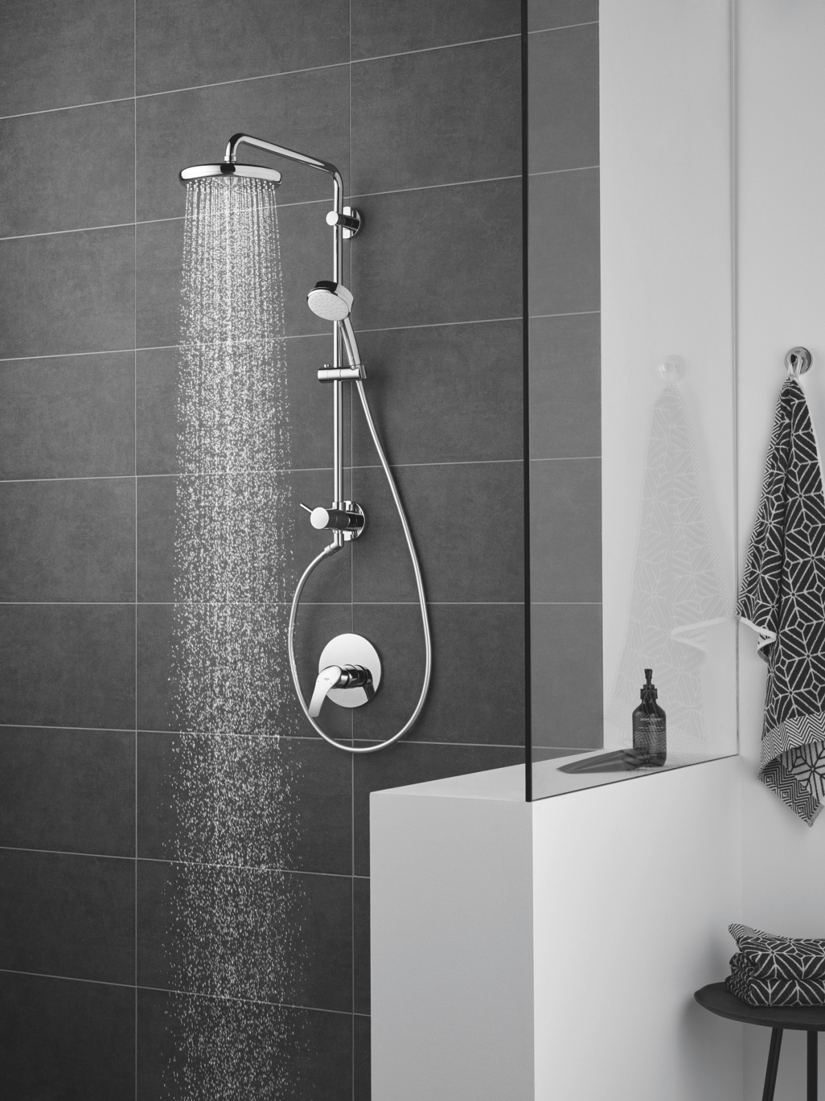 • GROHE DreamSpray zabezpečuje rovnomerné rozdelenie vody vo všetkých tryskách pre optimálny sprchovací zážitok.